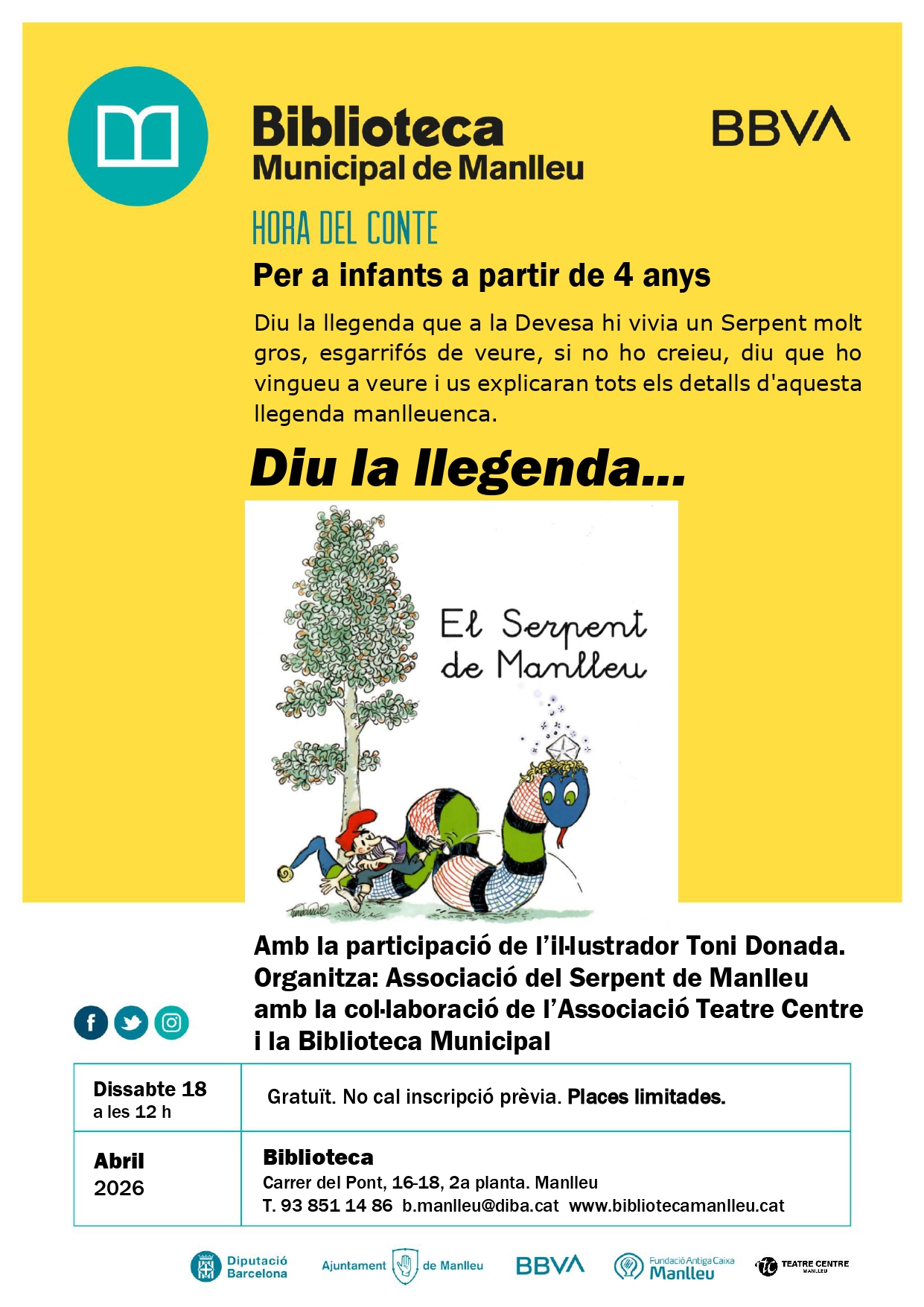 Organitza: Associació del Serpent de Manlleu amb la col·laboració de l’Associació Teatre Centre i la Biblioteca Municipal