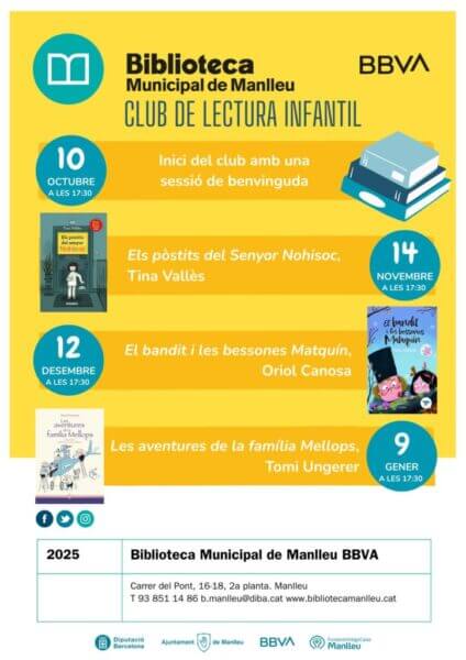El Club començarà el 10 d’octubre amb una sessió de benvinguda, on cada infant podrà portar el seu llibre preferit o una recomanació per compartir amb el grup.