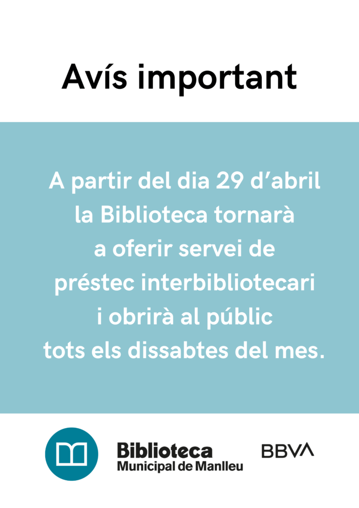 A partir del dia 29 d’abril la biblioteca tornarà a oferir servei de préstec interbibliotecari i obrirà al públic tots els dissabtes del mes.