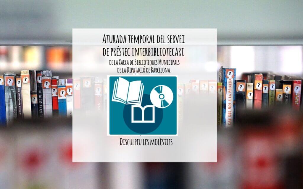 📢Us informem que el préstec interbibliotecari🔄 està aturat temporalment. Si necessiteu algun document o no us ha arribat el que teníeu demanat, si us plau poseu-vos en contacte amb la Biblioteca. 🔜Disculpeu les molèsties i us informarem del restabliment del servei tan aviat com sigui possible.