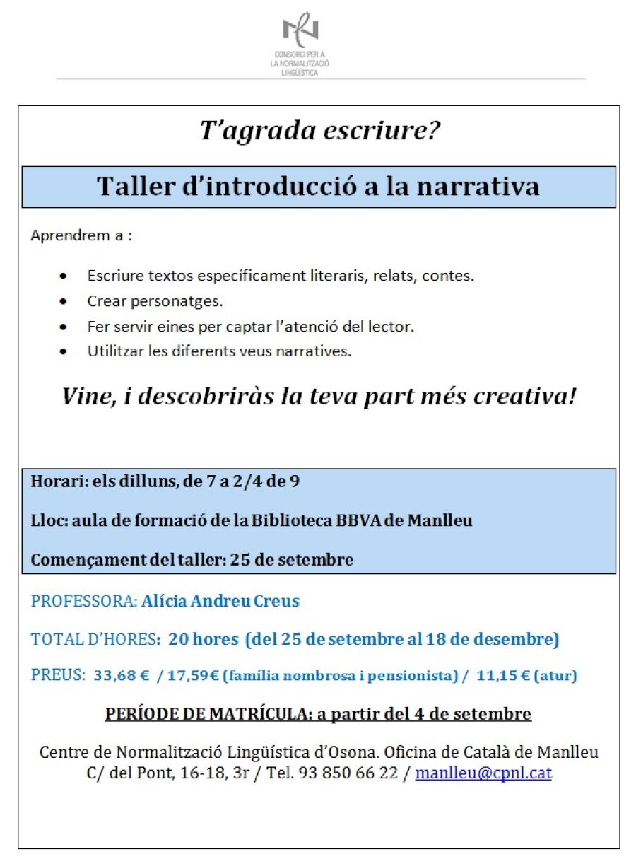 Lloc: aula de formació de la Biblioteca BBVA de Manlleu