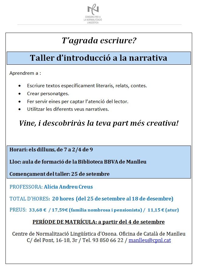 Taller d’introducció a la narrativa